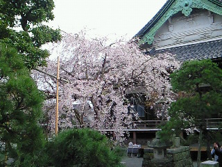 本覚寺では枝垂れ桜が満開です。
